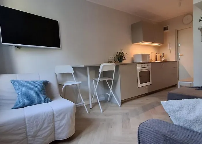 Apartament Blue Nest Sopot, di 18 m^2, è situato nel quartiere Kamienny Potok, a una distanza di 1 km dal Montecassino, e si affaccia sulla strada.